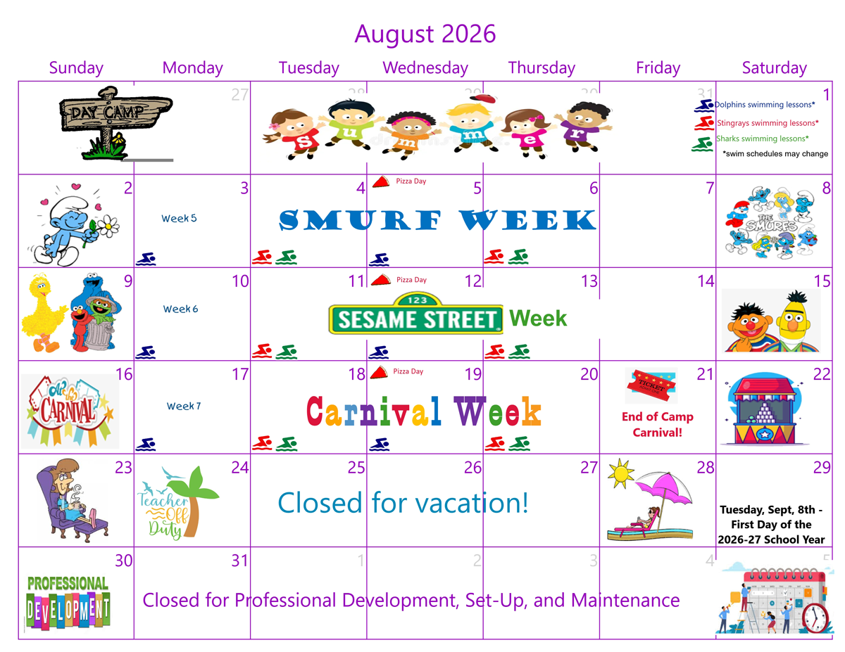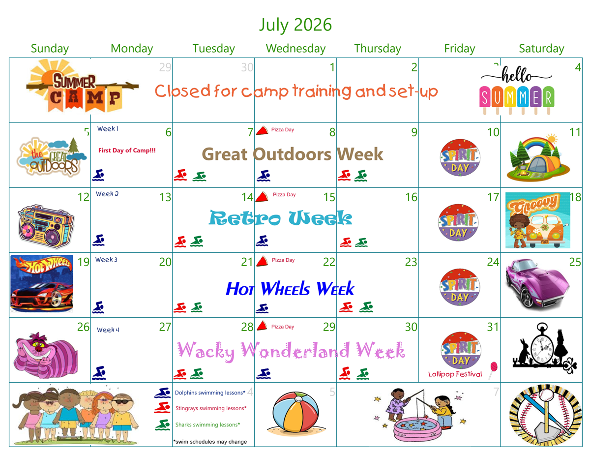 Campers aged 4 and above will be taking swimming lessons 2 times a week from Certified Water Safety Instructors at the Park Street YMCA. Our facility offers a shaded, large, fenced-in play yard as well as air-conditioned classrooms for rainy days. Summer camp is divided into theme weeks and is filled with special events, like our famous Lollipop Fest, Spirit Day Fridays, Topsy Turvy Day, and Camp Carnival!